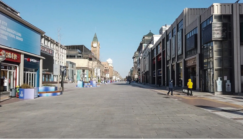 2022年12月13日,幾乎空無一人的北京王府井附近。(Yuxuan Zhang / AFP)
