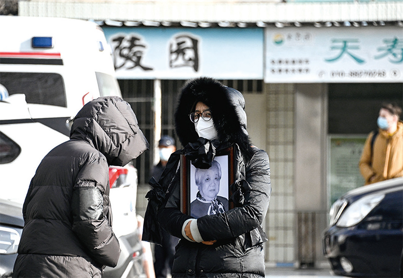 2022年12月20日,在北京爆發新一輪疫情期間,一名婦女在北京火葬場持著親人的遺像。(Noel Celis / AFP)