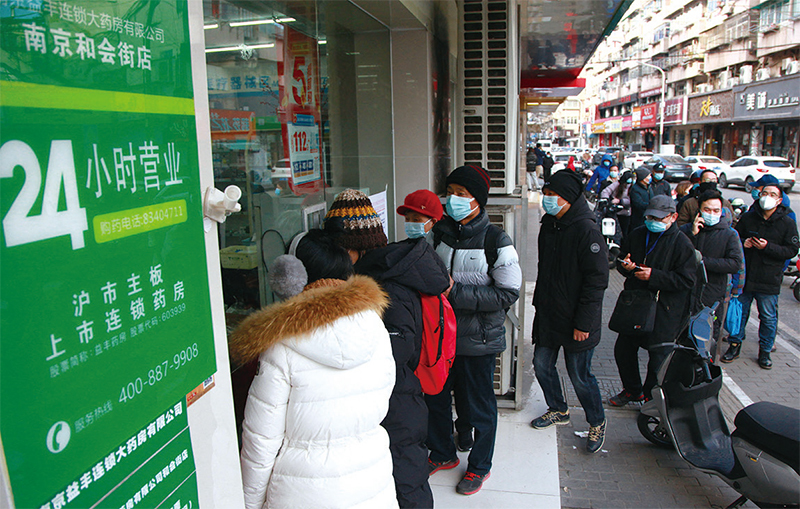 2022年12月20日,中國南京,民眾在藥店外排隊買藥。中國面臨COVID-19(中共病毒、新冠病毒)病例激增問題。(STR /AFP)