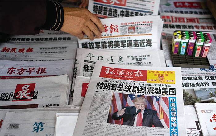 包括新華社《參考消息》原編委方學輝在內的多位曾任職中共喉舌媒體的名人,也於近日去世。圖為2016年11月10日,上海一家報攤。(Johannes Eisele / AFP)