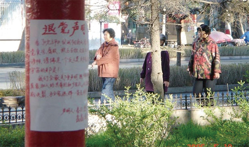 快退黨保平安,把聲明貼到公共場所,用化名也行,神看人心。圖為中國大陸公共場所的退黨聲明。(明慧網)