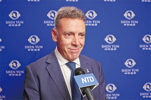 2022年6月4日晚,意大利北方聯盟黨眾議員Lino Pettazzi觀賞了神韻紐約藝術團在米蘭阿爾欽博第劇院(Teatro degli Arcimboldi)的第二場演出。(新唐人電視台)