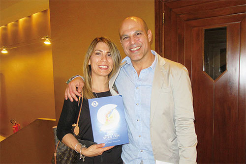 2022年6月9日晚,音樂家Fabio Furia與太太一起在意大利卡利亞里詩情劇場觀看了美國神韻世界藝術團的演出。(攝影/王亦笑)