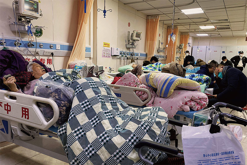 中國政府針對新冠疫情採取的措施,已經徹底摧毀了中共當局的合法性。圖為2022年12月30日,中國大陸新冠病毒患者躺在唐山工人醫院的病床上。(Noel Celis / AFP)