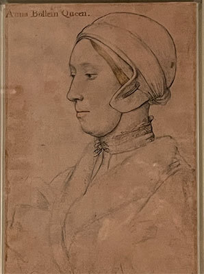 有一張安妮柏林的素描畫像也是出於小霍爾班,雖是素描,安妮的畫像流露出來的是有思想與性個堅毅的女子。事實上亨利的六位王后都是受過良好教育的女性,只有最後一位凱撒琳帕爾(Catherine Parr)得以善終。