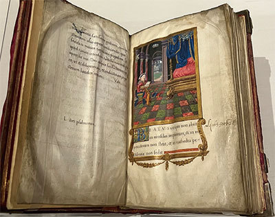 他們為什麼如此熱衷用這種形式來震懾臣民?不管其動機如何,可以想像這些掛滿在都鐸宮廷牆上時的氣勢與震撼力。展場中有一本用蛋彩畫的故事書,這本小羊皮製成的小書,是來自鄂圖曼帝國的學者和修道士菲力波.阿爾貝里奇(Filippo Alberici)送給亨利七世的禮物(目前存放在劍橋大學圖書館),是翻譯希臘哲人蘇格拉底的書。從這些文物中可見亨利七世活躍於英倫以外的地方、與學者藝匠保持著往來。在他開創王朝初期,軍事上取得了成功的同時,也希望人們認同他是個學者。