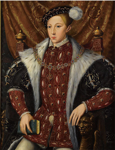 手持象徵都鐸紅玫瑰的愛德華六世。