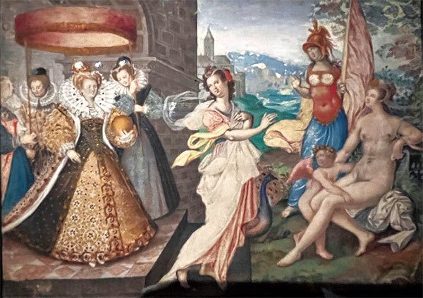 畫作雖小訊息量卻很大,意味著女王承傳古典西方文明與建立大英帝國的野心。英國在伊莉莎白女王時期走上世界霸權的舞台,北美洲成為英國的殖民地,西班牙讓出了海上霸權,東印度公司成立。