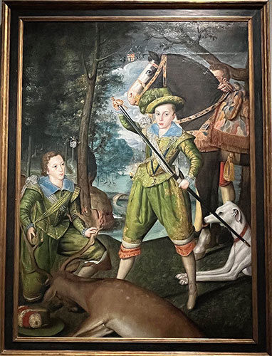 展覽的最後一張大幅油畫是英國本土畫家艾薩克.奧利弗(Isaac Oliver, c. 1565–1617)的作品。這幅畫與都鐸三代君主靜態的肖畫像迴然不同,充滿運動感的年輕王子,持劍入鞘還是拔劍不得而知,腳前躺著一隻鹿,英氣十足,他是新威爾士親王亨利弗雷德里克(Henry Frederick, Prince of Wales)(圖36)。他的父親詹姆士一世將接任伊莉莎白女王的位子。這張畫選放在展場最後。