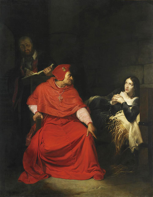 溫徹斯特的樞機在審問貞德。由Gillot Saint-Èvre所繪,現存巴黎羅浮宮。(公有領域)