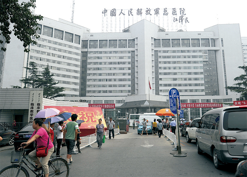 中共軍方301總醫院「981首長健康工程」,延壽目標為150歲,該工程包括器官功能再生,即器官「特供」。圖為301醫院外觀。(Liu Jin / AFP)