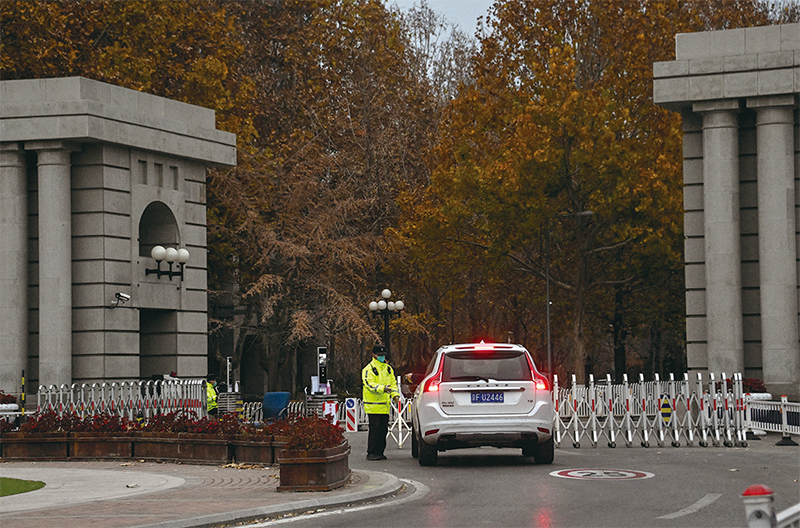2022年12月解封後,清華和北大兩個學府,一個月內就有三十多名教職員工離世,他們基本上都是中共黨員,或為中共宣傳或站台的人。圖為2022年11月27日清華大學校門。(Noel Celis / AFP)