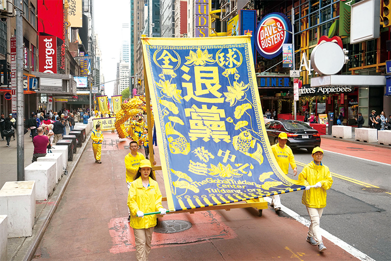 面對中共帶來的這波天災,唯有聲明退出中共的一切組織,與中共徹底劃清界線,才是度過這場劫難的唯一通途。圖為2022年5月13日法輪功學員在紐約曼哈頓大遊行,慶賀第23屆「世界法輪大法日」。(戴兵/大紀元)