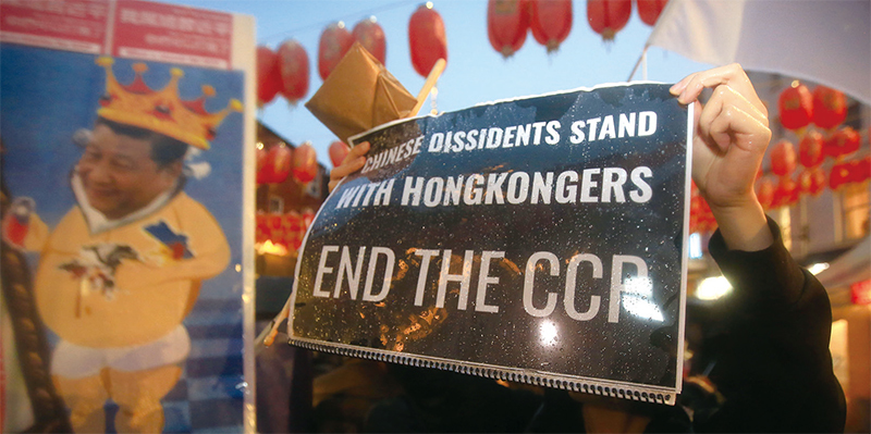 中國人靠維權和躺平都不可能改變現狀,唯一可行之路,就是人人退出共產黨、共青團、少先隊,解體中共。圖為2022年10月23日倫敦唐人街抗議者打出「結束中共」的標語。(Martin Pope / Getty Images)