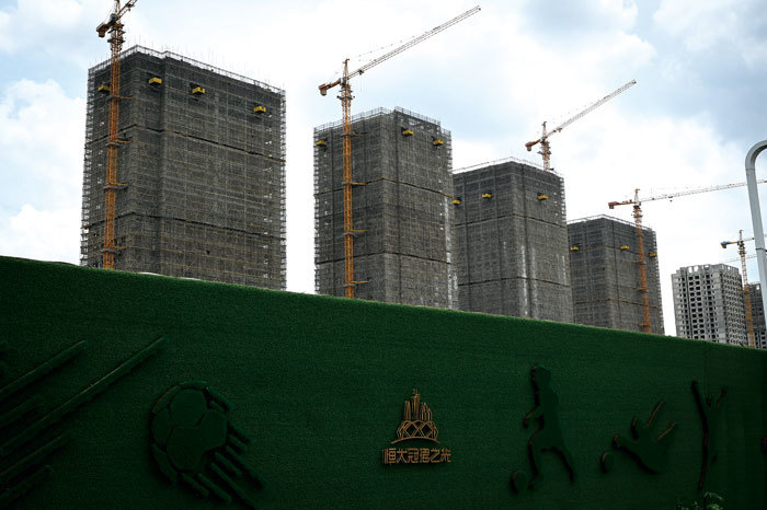 繼恆大爆雷後,2022年陸續有十餘家上市龍頭房企出現流動性困難。圖為廣東省廣州市,興建中的恆大住宅樓的全景圖(Jade Gao / AFP)