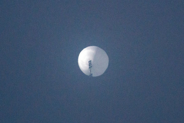 中共間諜氣球早在1月28日已進入美國,直到2月4日被擊落,該氣球飄過半個美國,包括蒙大拿州的空軍基地和核導彈發射井。圖為2023年2月1日,美國蒙大拿州比林斯上空的疑似中共間諜氣球。(Chase Doak / AFP)