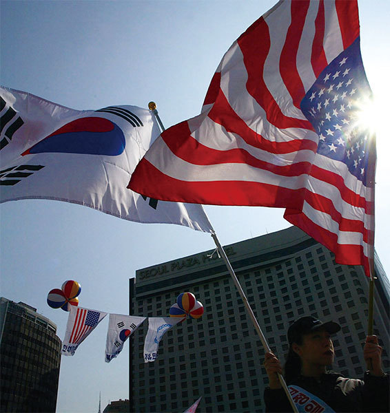 在美日韓的三角聯盟中,美日與美韓這兩條邊歷來都是極其牢固的。較弱的一條邊就是日韓之間的關係。