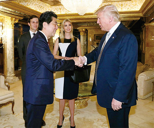 2016年11月,特朗普當選美國總統,事態發生了根本轉變。11月8日,當安倍得知特朗普當選後,立即決定前往紐約,會見特朗普。在特朗普當選不到十天的11月17日(美國時間),安倍便來到紐約特朗普大廈,會晤特朗普。面對一個外交素人,安倍在會談中告訴特朗普,來自中共的威脅有多大、多嚴重,他清晰而充分地闡述了他的對中政策。