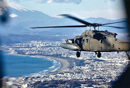 2022年1月18日,一架美國陸軍黑鷹直升機在日本富士山附近飛行。(美國國防部提供)