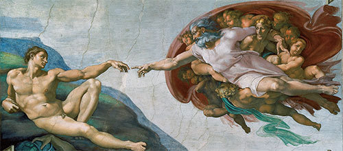 《創造亞當》是《創世紀》的中心主題,「神按照自己的形像造人」也是世界許多民族共同的古老傳說。(維基百科)