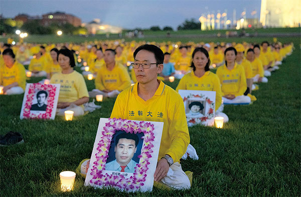2022年7月21日,法輪功學員在美國首都華盛頓特區舉行燭光晚會,悼念23年來為堅持正信而被迫害離世的法輪功學員。(戴兵/大紀元)
