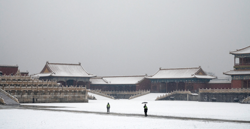 2022年3月18日北京晚春降雪。(Kevin Frayer / Getty Images)