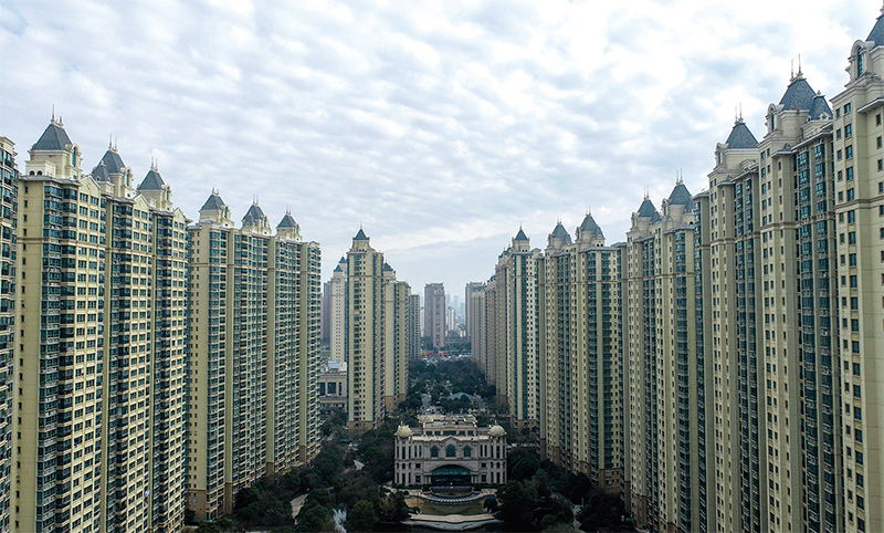 英媒指習近平的意識形態對中國經濟造成衝擊。房地產行業占中國GDP超過五分之一,但政府實施嚴厲打擊後出現資金短缺。圖為2022年12月3日,中國房地產開發商恆大在江蘇淮安建造的一個住宅區。(STR / AFP)