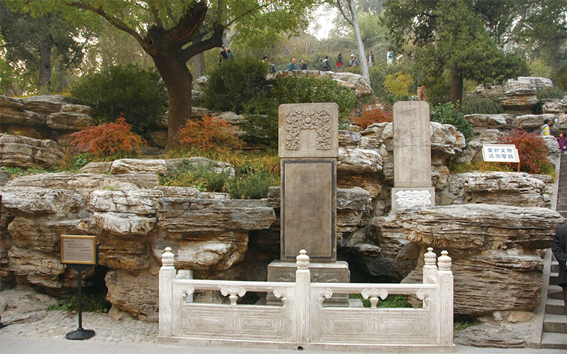 民主人士魏京生曾發文表示,明朝滅在野心勃勃的崇禎皇帝手裡,關外的勁敵求和也和不成,只能不斷找打,被打得落花流水。現在的習近平簡直就是崇禎皇帝的雙胞胎。圖為「崇禎皇帝殉國處」的兩通碑刻。(公有領域)