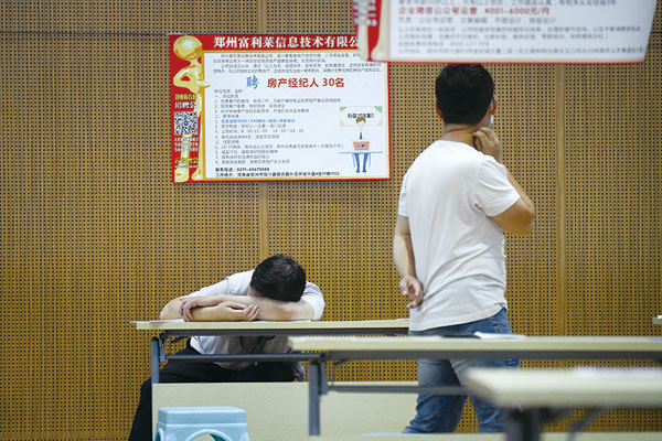 2023年2月2日,廣州珠海區的招聘者排起長隊等待求職者。在被稱為「世界工廠」的中國,招工變成一件不易的事情。圖為2020年7月25日河南省鄭州市的招聘會。(Wang Zhao/AFP)