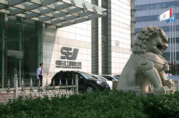 國企往往占據國家戰略重要性行業,並壟斷了社會大部分的資源和資金。圖為位於北京的國企中石化工程股份有限公司入口處。(AFP)