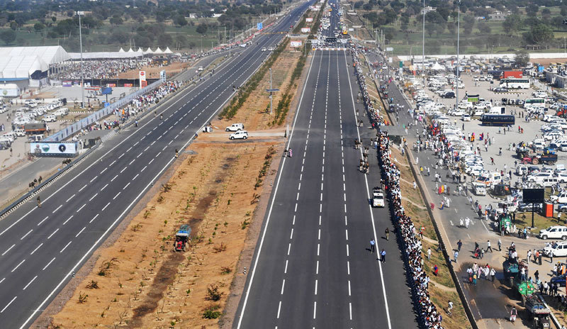 近年以來印度基礎設施大幅進步。圖為2023年2月12日,印度開通了德里至孟買高速公路新落成的路段。(PIB / AFP)