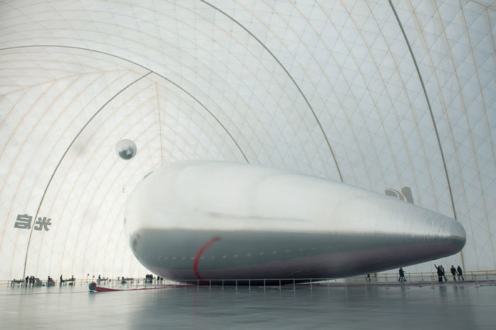 總部位於深圳的氣球開發商光啟超材料公司,2020年因在中國侵犯人權受到美國制裁。圖為2014年底,光啟展示顛覆式空間技術平台「雲端」號。(VCG / Getty Images)