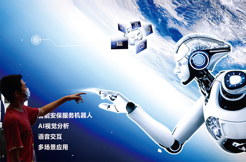 人工智能等新基建涉及許多領域的前沿技術,研發周期長、風險高、成本大。圖為在北京舉行的2022年世界機器人大會上的AI機器人海報。(Lintao Zhang/Getty Images)