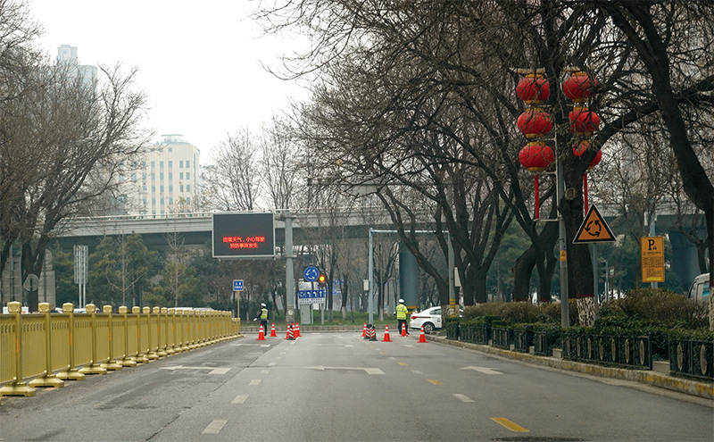 2021年12月23日起西安封城32天,劉國中「創新」地搞出「社會面清零」,防疫措施非常嚴厲。圖為西安封城後空蕩蕩的街頭。(STR / AFP)