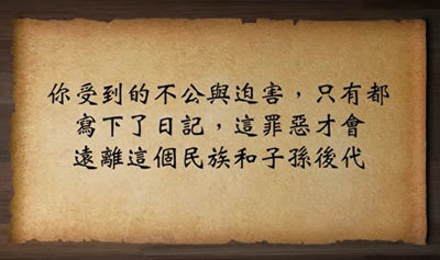 只有張安妮、李安妮都寫下了日記,罪惡才會遠離這個民族和子孫後代。◇