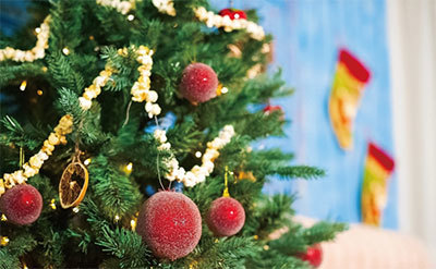 用爆米花裝飾的聖誕樹。(Shutterstock)