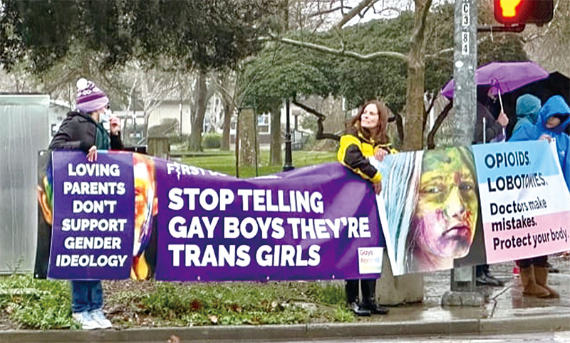 加州律師媽媽弗萊迪在抗議性別意識形態的集會上。(艾琳.弗萊迪提供)