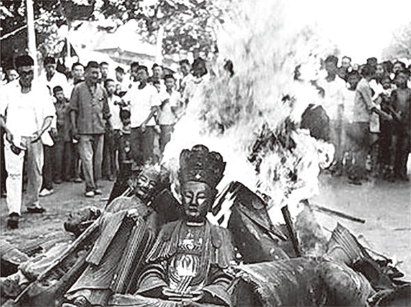 文革期間,毛到杭州靈隱寺抽得一籤「威命不可擋」,於是發動「文革」打砸搶,中國幾千年傳統文化被破壞殆盡。(資料圖片)