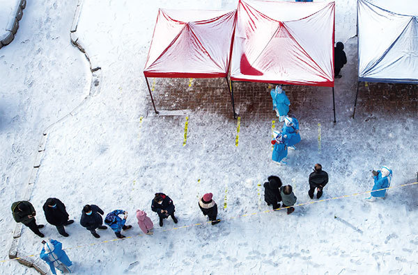 2022年3月15日,吉林省吉林市的居民排隊接受中共病毒(COVID-19)核酸檢測。(STR / AFP)