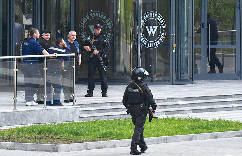 2023年6月24日,俄羅斯安全部隊封鎖了聖彼得堡瓦格納中心大樓。(Olga Maltseva / AFP)