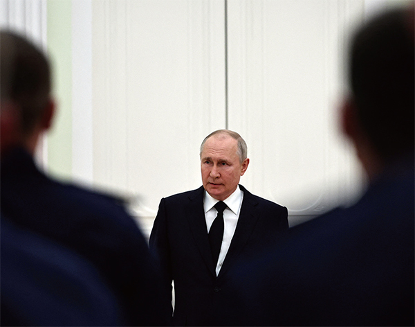 兵變事件本身發出一個可怕信號:普京不再是不可挑戰,甚至不再是不可替代的那個人。圖為6月27日,普京在莫斯科克里姆林宮會見軍人。(Mikhail Tereshchenko / Sputnik / AFP)