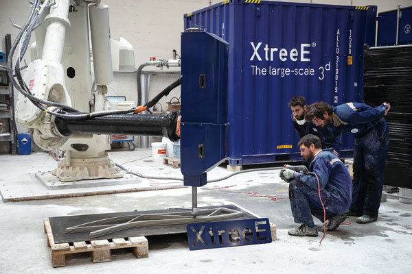 3D 列印機問世已屆10 年,卻只占據了製造業的一個零頭。圖為2019 年4 月4 日, 法國建築3D 列印公司XtreeE 製作混凝土牆。(Thomas Samson / AFP)