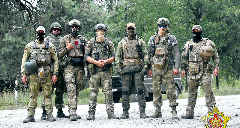 2023年7月20日白俄羅斯國防部發布的圖片顯示,瓦格納與白俄羅斯特種部隊士兵在布列斯特軍事基地進行聯合訓練。(Handout / Telegram / @modmilby / AFP)