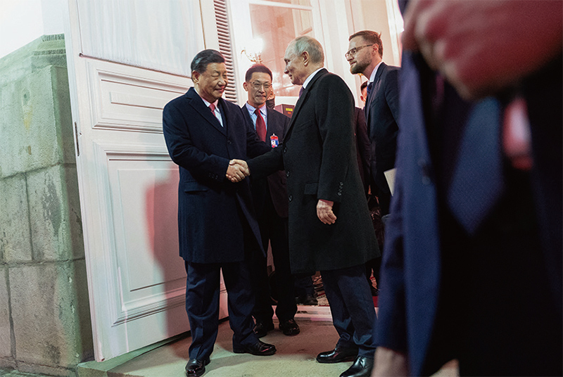 支撐俄國不倒的根本原因是普京得到了習近平的大力支持。圖為2023年3月21日在克里姆林宮舉行會談後,普京與習近平握手告別。(Pavel Byrkin / putnik / AFP)