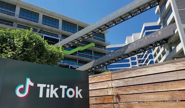 TikTok迅速成功的祕訣在於該應用程序的推薦引擎,一種機器演算法,能夠重複顯示訂製視頻,讓用戶著迷。圖為2020年8月11日,TikTok位於洛杉磯西部的一棟樓新辦公大樓。(Chris Delmas / AFP)