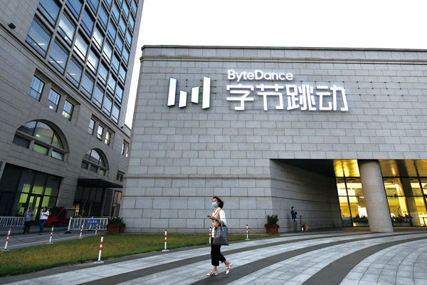 包括字節跳動在內的數十家中國科技巨頭已與中共分享了有關其所謂祕密算法的詳細信息。圖爲2020年9月16日,位於北京的一棟字節跳動辦公大樓。(Greg Baker/AFP)
