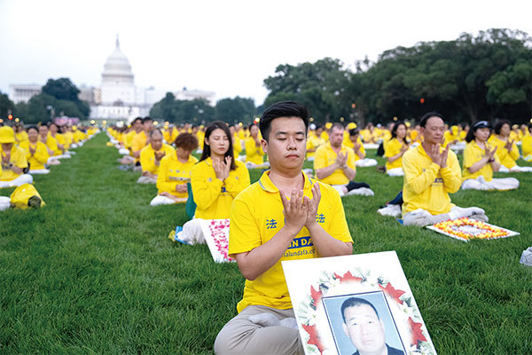 2023年7月20日,法輪功學員在美國首都華盛頓DC國會山前舉行大型燭光悼念活動。(戴兵/大紀元)