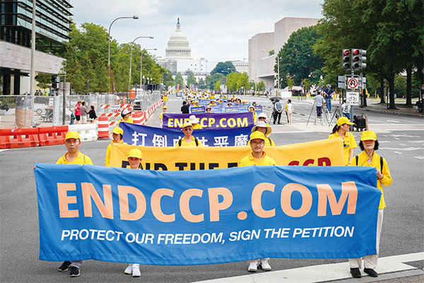 法輪功學員持續了二十多年的全方位講請真相活動,開啟了人類最偉大的精神解放運動:4億人退出中共黨、團、隊。圖為2023年7月20日,法輪功學員在美國首都華盛頓DC舉行反迫害大遊行。(張靜怡/大紀元)