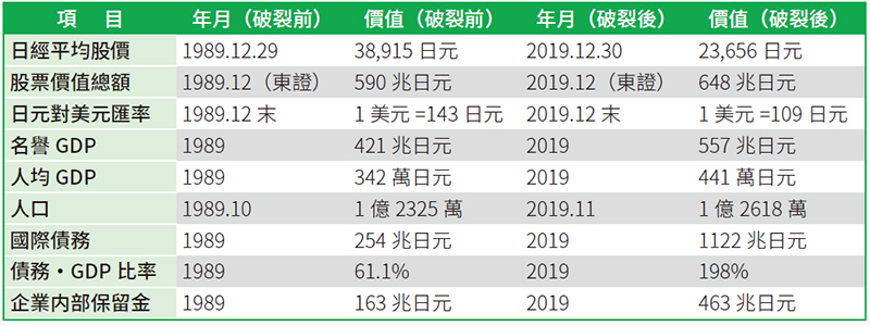 這30年中,日本究竟發生了怎樣的變化?請看下面一組統計數據。