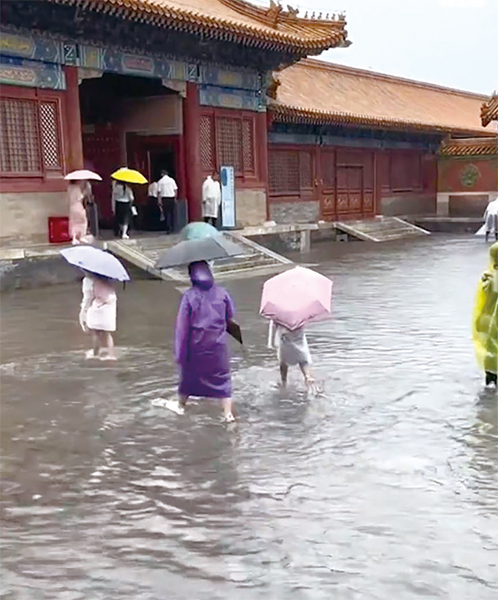 7月22日,六百年沒淹過的紫禁城,出現「千龍吐水」奇觀。不過,陸媒的驚歎、自嗨還飄在空中,龍王就把「奇觀」灑向帝都和周邊。一時間,傾缸的大雨倒灌而下,140年沒見過的巨量降水讓北京紅色大佬們全翻了眼白。